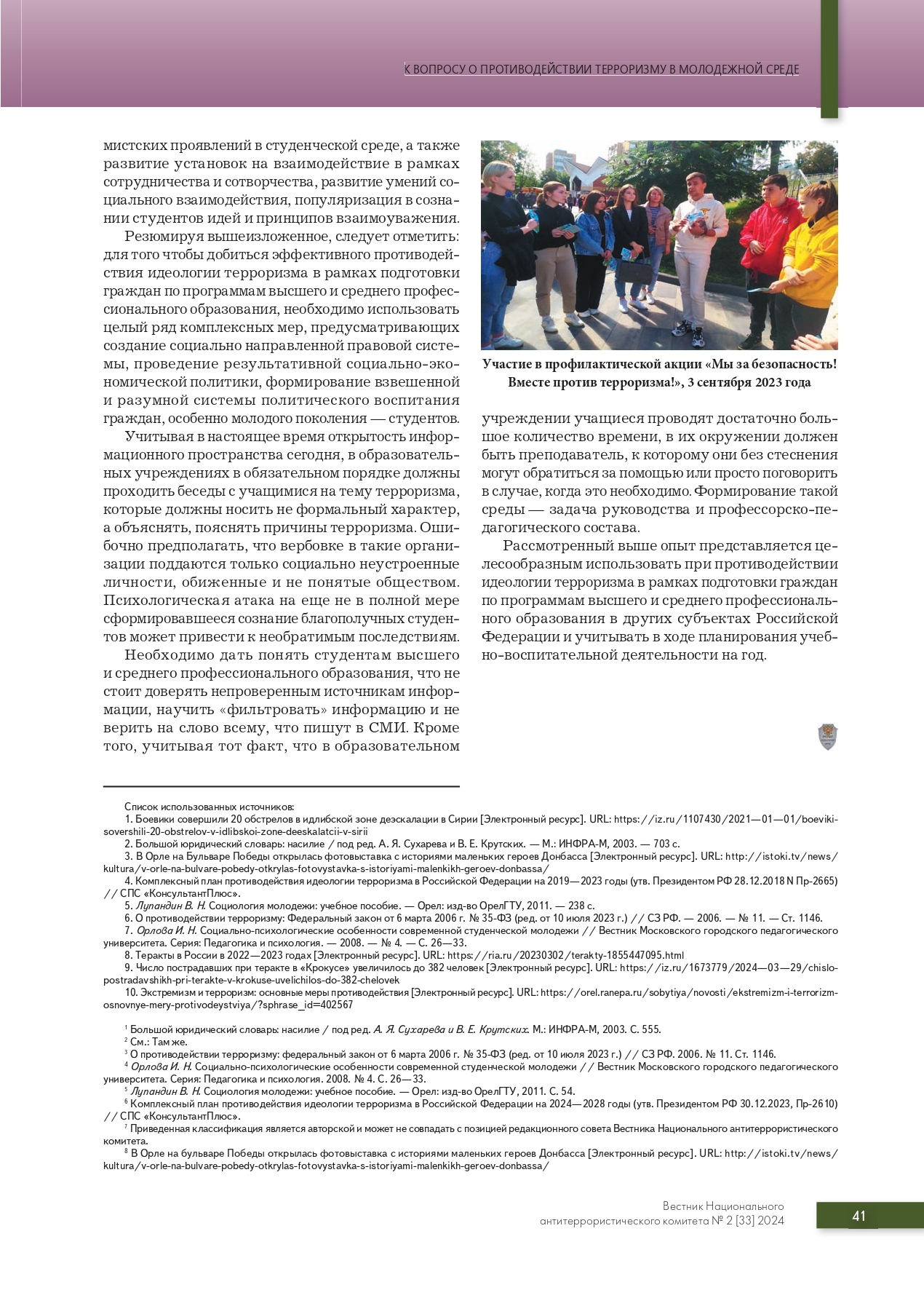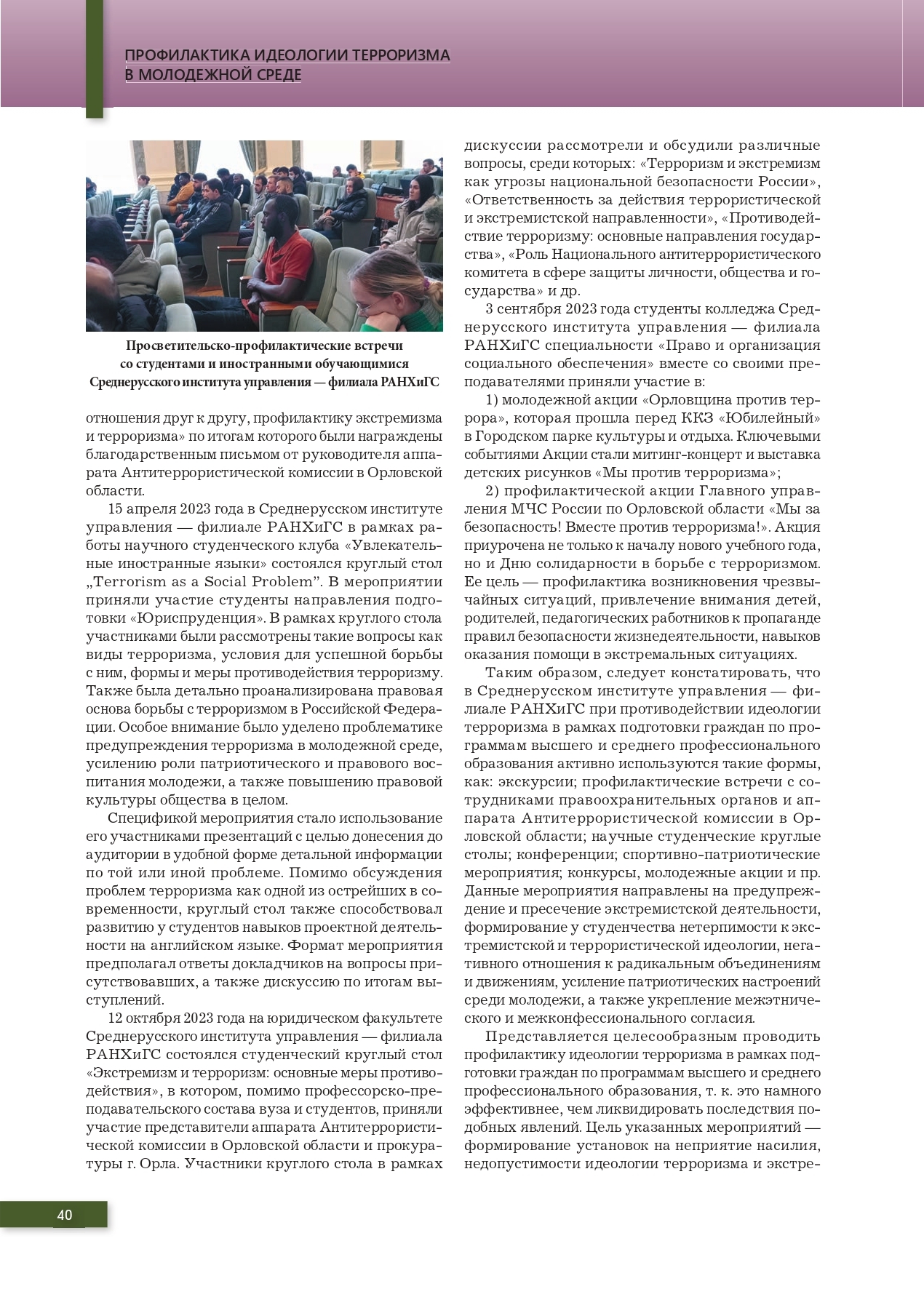 Профилактика идеологии терроризма в молодежной среде